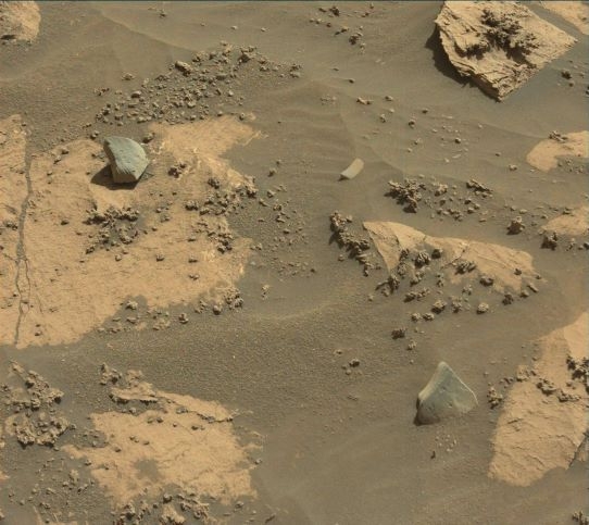 ChemCam is also to look at this target with a passive observation and Mastcam is pointing at it with a multispectral observation. The nodular features are the target of two ChemCam LIBS observations on targets ‘Pageas’ and ‘Paugnac.’ Mastcam is documenting each of the ChemCam targets with a single image, and has one other single image on a very dark and blueish looking stone, Schwenzer adds.