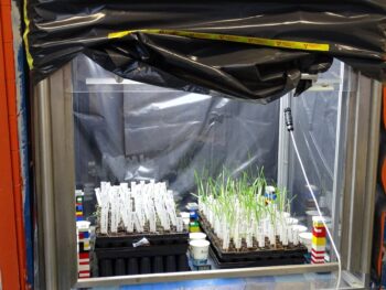 “We conducted the experiment in a special ‘led castle’ and in a fume hood,” says Nyncke Tack. There were multiple effects of the radiation visible, including brown leaves and dwarfed growth. Besides that, the researcher adds, the harvest was disappointing and lower than a non-radiated control group of plants.