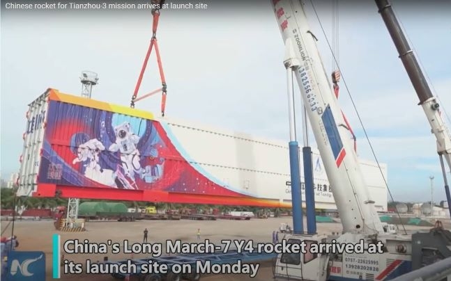 Meanwhile, a Long March-7 Y4 rocket has arrived at its launch site in southern China’s Hainan Province and is now being readied to boost the Tianzhou-3 supply craft.