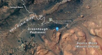 “It has been a terrific journey so far, and it is fun thinking back to those first images we saw on sol 0 of the mission,” notes Abigail Fraeman, a planetary geologist at NASA’s Jet Propulsion Laboratory. “The terrain in our landing area was quite different than the rocks we’re examining now, and it’s amazing to think we’ve climbed so high on the flanks of Mt. Sharp, which loomed in the distance in that first Hazcam image!”