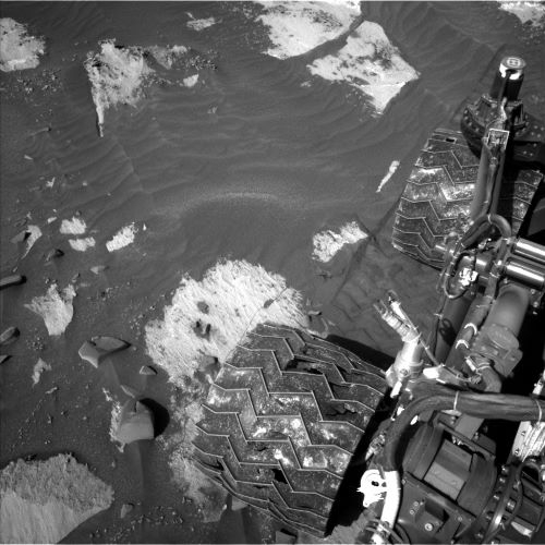 “This is an usually short drive,” Fraeman points out, “and it’s because the terrain is so rocky that it’s hard to see too far beyond the rover’s current position. We don’t want to use too much autonomous driving in this rocky terrain and risk damaging the wheels. Despite the short drive, we should end up at a great looking outcrop and be prepared for more contact science this weekend.”