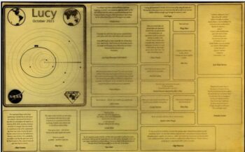 Similar to four earlier spacecraft – Pioneer 10 and 11, Voyager 1 and 2 – Lucy is carrying a plaque. However, because Lucy will not be venturing outside of our Solar System, Lucy’s plaque is a time-capsule featuring messages to our descendants.