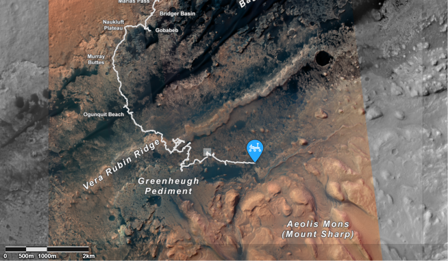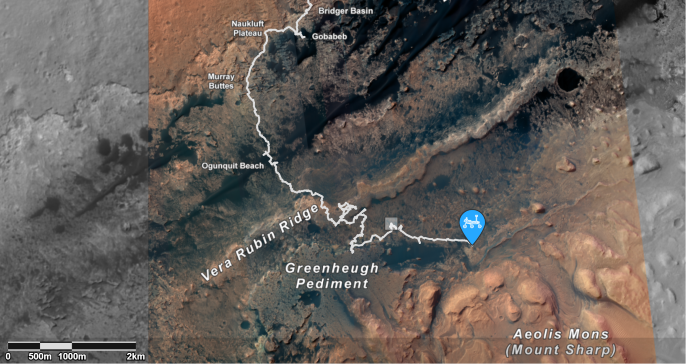 Ryan Anderson, a planetary geologist at the USGS Astrogeology Science Center in Flagstaff, Arizona reports that the Mars rover team decided to drive to a drill location closer to the cliff face of “Mont Mercou.”