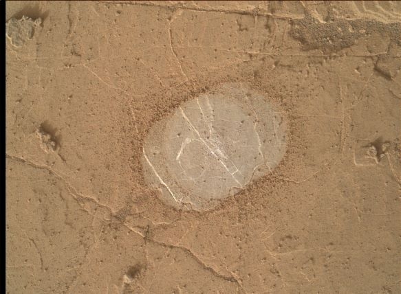 Brushed spot on “Montrem” as seen in this Curiosity Mars Hand Lens Imager photo produced on Sol 3051, March 7, 2021.