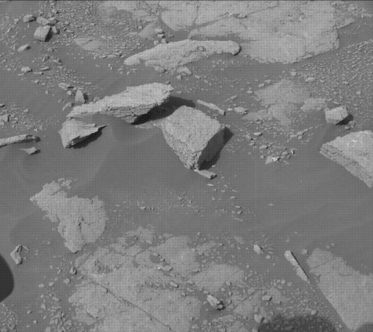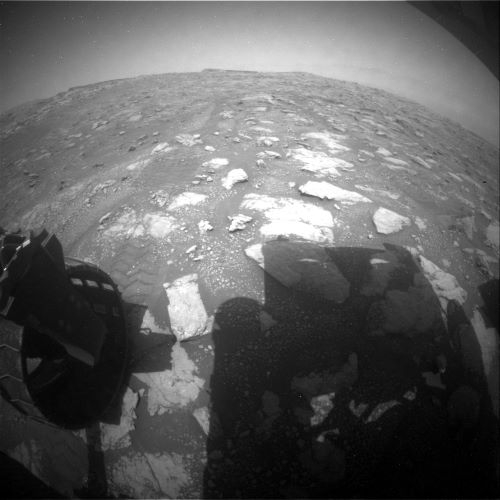 Curiosity Navcam Left image clearly shows the boundary between the smooth and pebbly portion of the unit and the large blocky portion scientists are investigating on a brief “toe dip” into the rubbly area. Photo taken on Sol 3013, January 27, 2021
