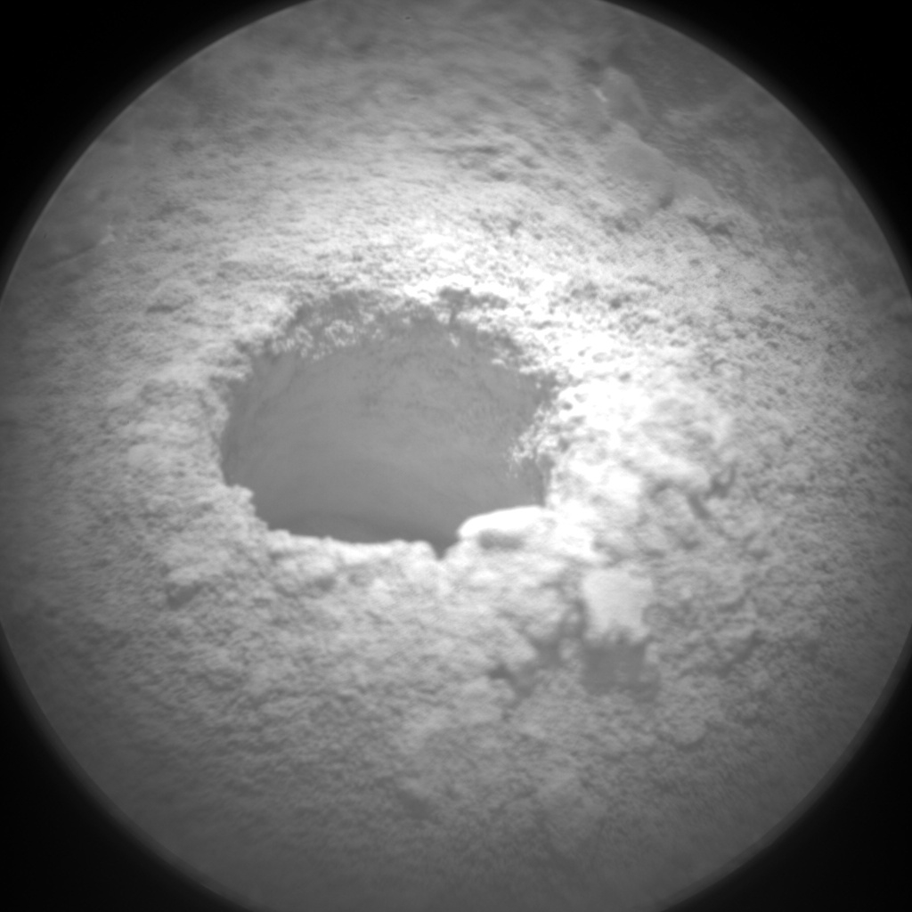 Barely visible laser shots within newly drilled hole. Curiosity Mastcam Right image acquired on Sol 2263, December 18, 2018.