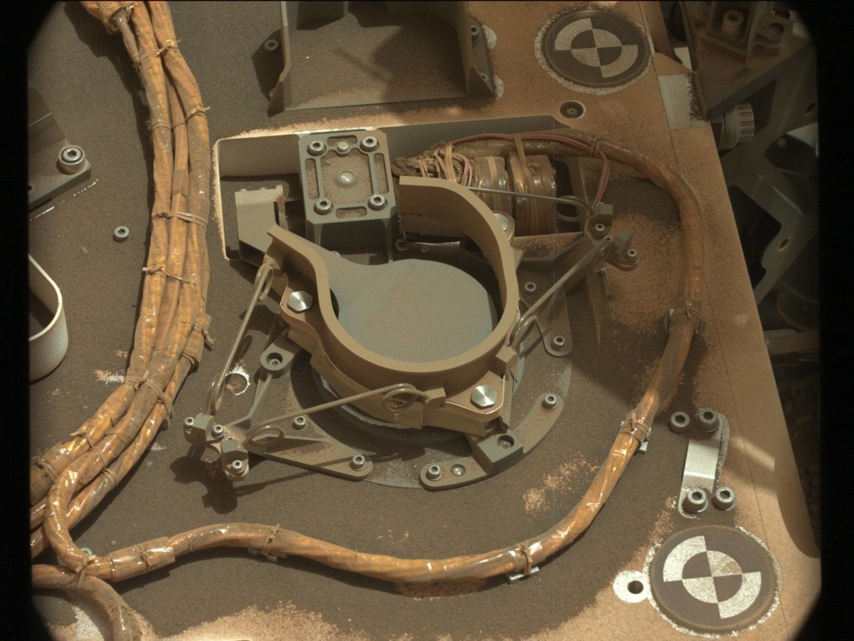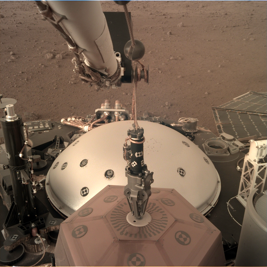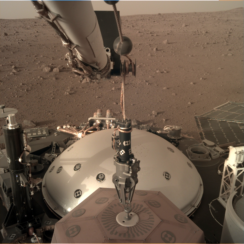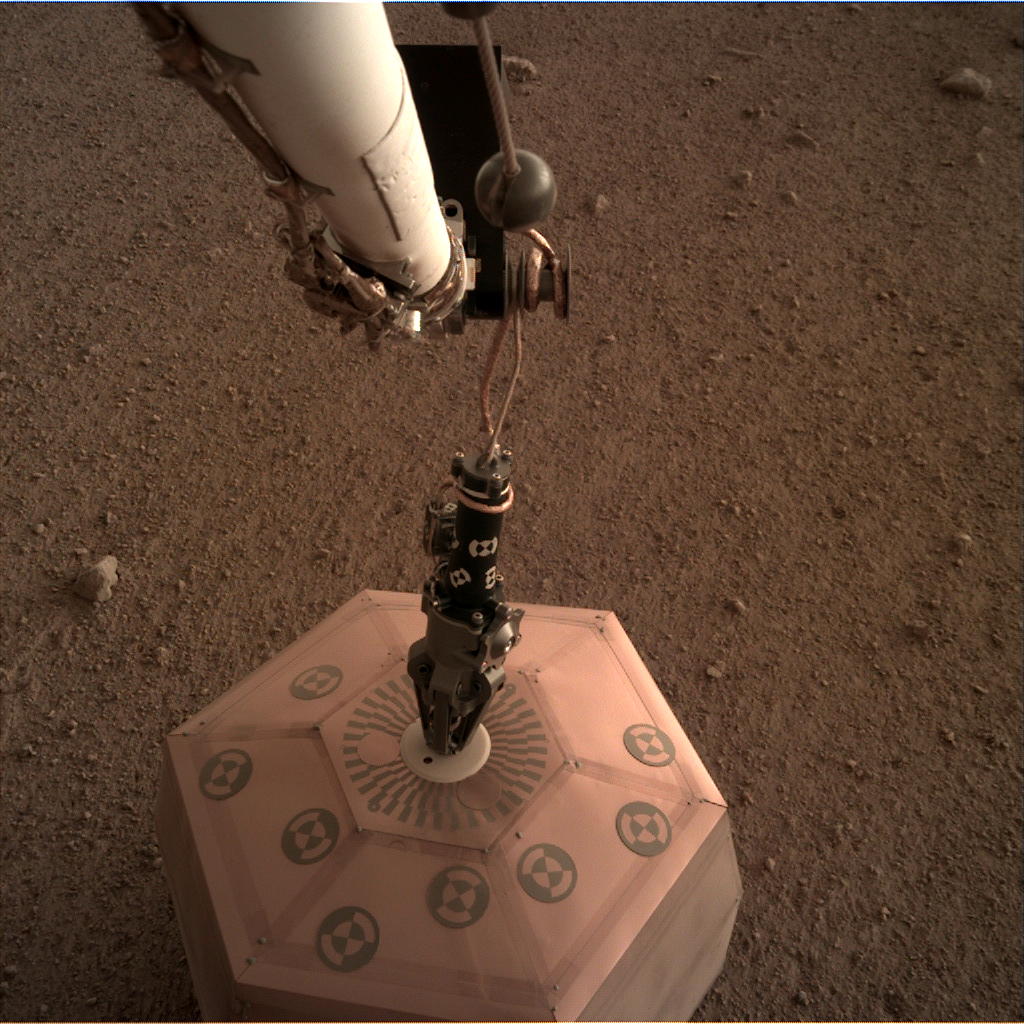 In the coming days, the InSight team will work on leveling the French-built seismometer, which is sitting on ground that is tilted 2 to 3 degrees. The first seismometer science data should begin to flow back to Earth after the seismometer is in the right position.