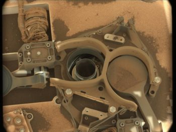 “The rover will open one of its SAM inlet covers and the arm will be moved over to the top of it and then the drill bit will be reversed in a way that will trickle some finely-ground rock powder down into SAM,” Guzewich says.
