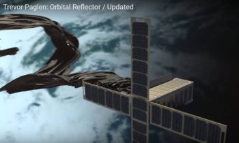 Orbital Reflector is a sculpture constructed of a lightweight material similar to Mylar. It is housed within a small box-like CubeSat. Once in low Earth orbit at a distance of about 350 miles (575 kilometers) from Earth, the CubeSat opens and releases the sculpture, which self-inflates like a balloon.
