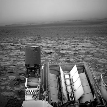 Now performing Sol 2096 duties, NASA’s Mars Curiosity rover has made a steep drive on Sol 2094 and is back over the crest of Vera Rubin Ridge and enjoying the view of flatter terrain ahead.