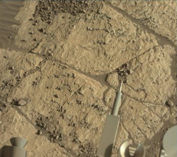 In the afternoon, the rover was slated to use its Dust Removal Tool (DRT) to clear a fresh patch of gray bedrock to analyze with the robot’s Mars Hand Lens Imager (MAHLI) and use the Alpha Particle X-Ray Spectrometer (APXS) at the target “Newmachar,” followed by MAHLI imaging of the target “Yesnaby” to investigate a dark gray vein.