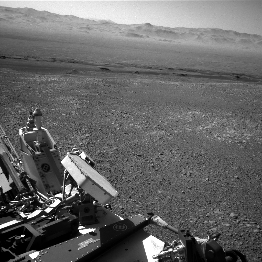 On the first sol of the weekend plan (Sol 1961), the robot is to carry out a long science block filled with a suite of Chemistry and Camera (ChemCam) observations: Laser-induced breakdown spectroscopy (LIBS) measurements on bedrock targets “Glenfinnan” and “Skara Brae,” a long-distance Remote Micro-Imager (RMI) photo of the lower slopes of Mount Sharp, and a passive measurement of “Bloodstone Hill.”
