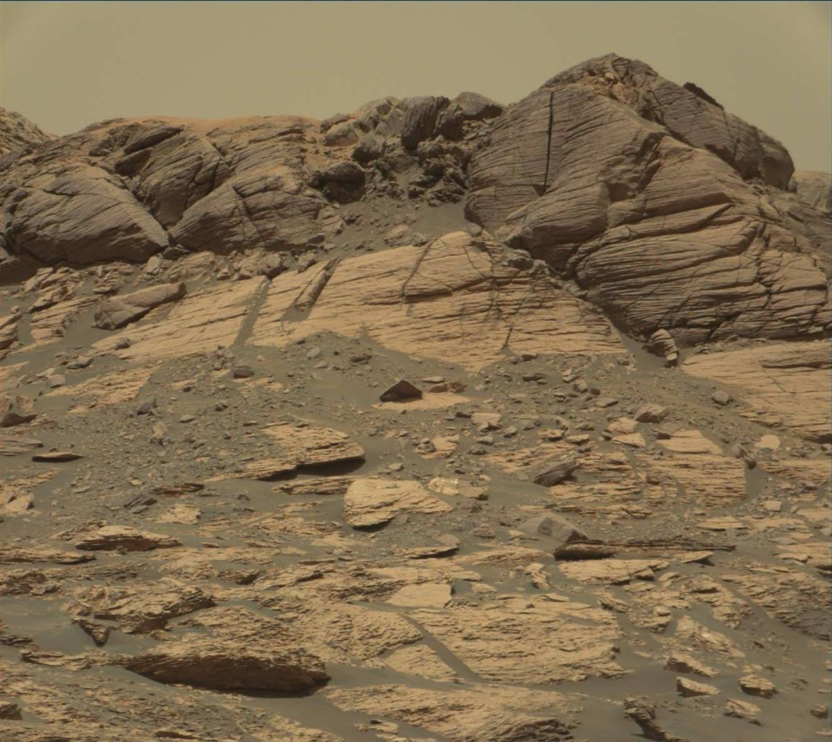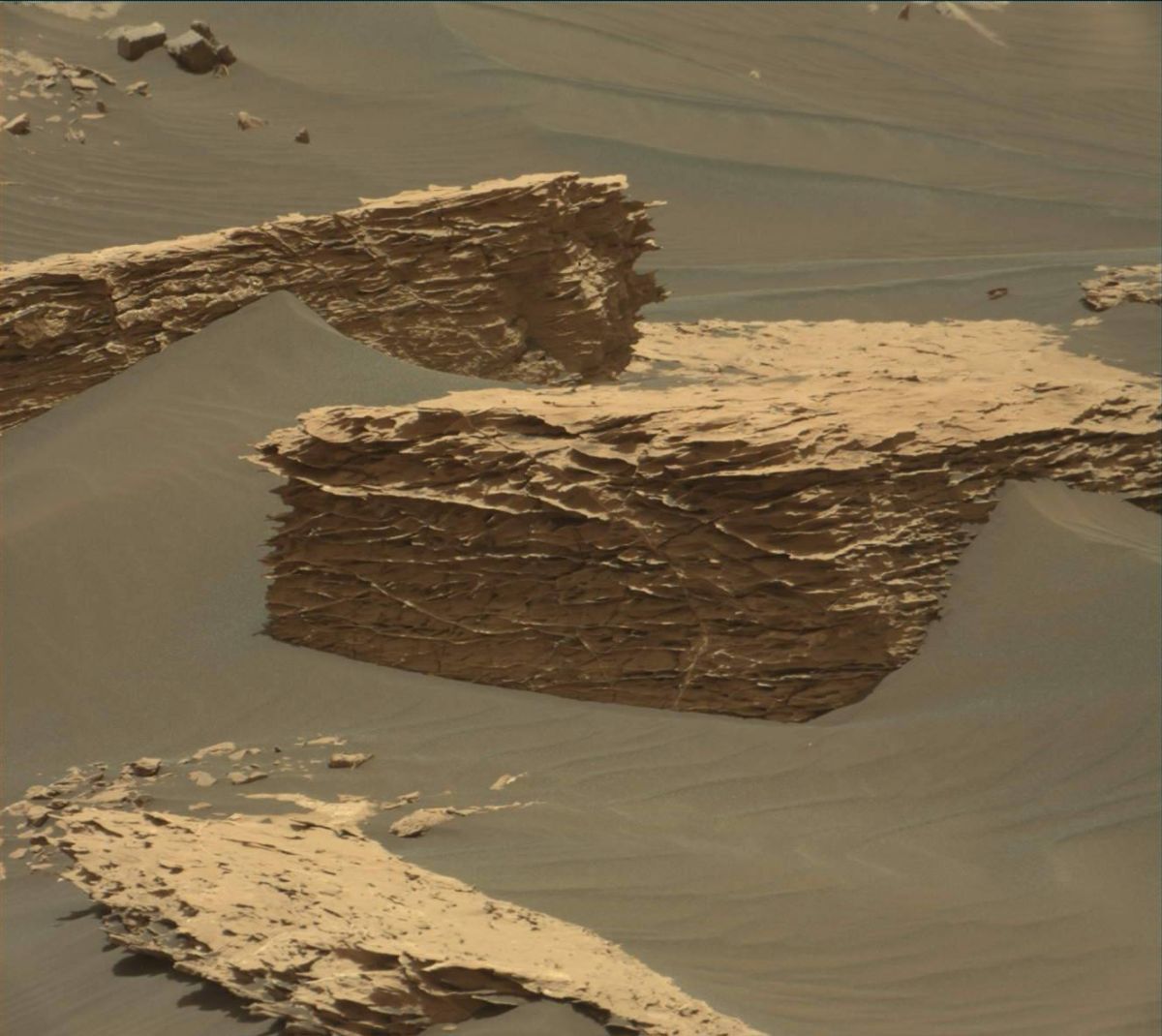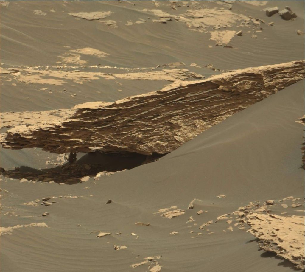 This rocky slab will be extensively imaged using Curiosity’s Mastcam. In addition to imaging, three rocky targets will be chemically analyzed by the rover.