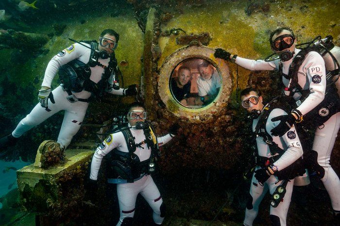 Six aquanauts took a dive of some 65 feet (20 meters) to the sea floor where they will spend 10 days living and working below the waves. They are now on board the Aquarius underwater habitat off the coast of Florida.