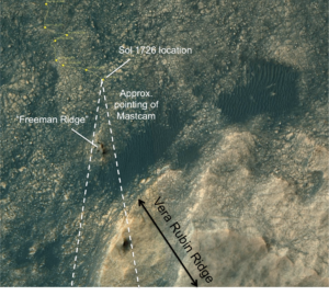 NASA’s Curiosity Mars rover is performing Sol 1734 duties and “gazing longingly towards Vera Rubin Ridge,” reports Mark Salvatore, a planetary geologist and a Curiosity participating scientist and faculty member at Northern Arizona University.