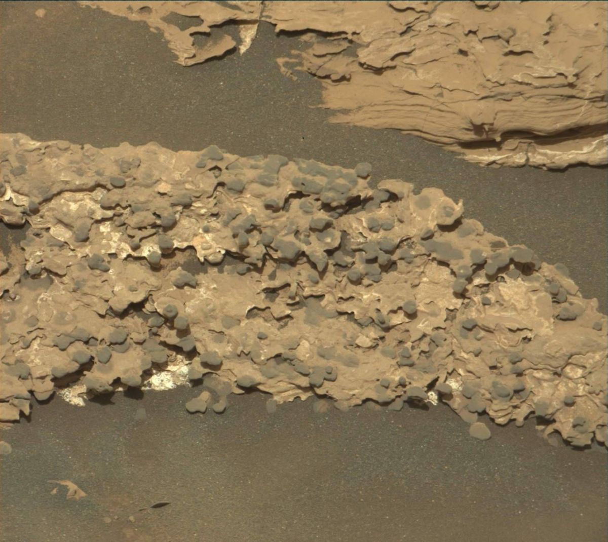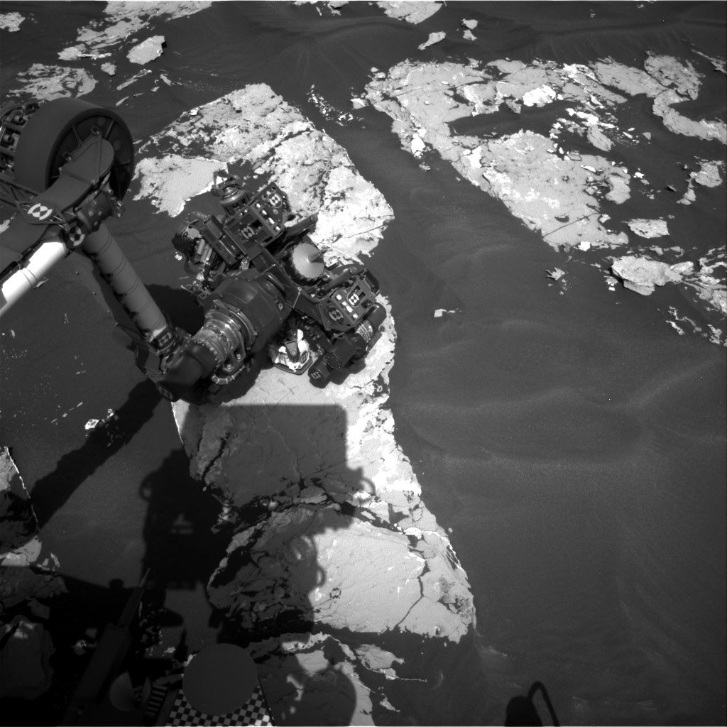 “To keep up our regular cadence of contact science, the team effectively extended the weekend by a day, planning contact science in this Monday plan,” Minitti reports. “The workspace in front of the rover did not disappoint, with no shortage of options on a nice slab of Murray formation bedrock to reach out and touch!”