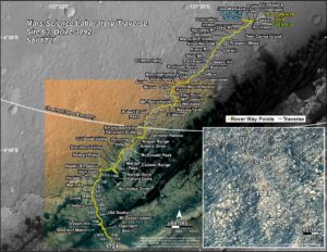 The map shows the route driven by NASA’s Mars rover Curiosity through the 1721 Martian day, or sol, of the rover’s mission on Mars (June 09, 2017).