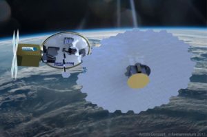 This system would recycle a structural element of that rocket — known as an EELV Secondary Payload Adapter ring — by converting the ring’s aluminum material into a very large, high-precision antenna reflector.