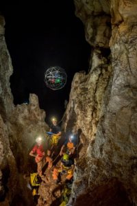 ESA astronaut Luca Parmitano with the Flyability team flying the drone in the Cucchiara Cave.