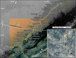 This map shows the route driven by NASA’s Mars rover Curiosity through the 1700 Martian day, or sol, of the rover’s mission on Mars (May 20, 2017).