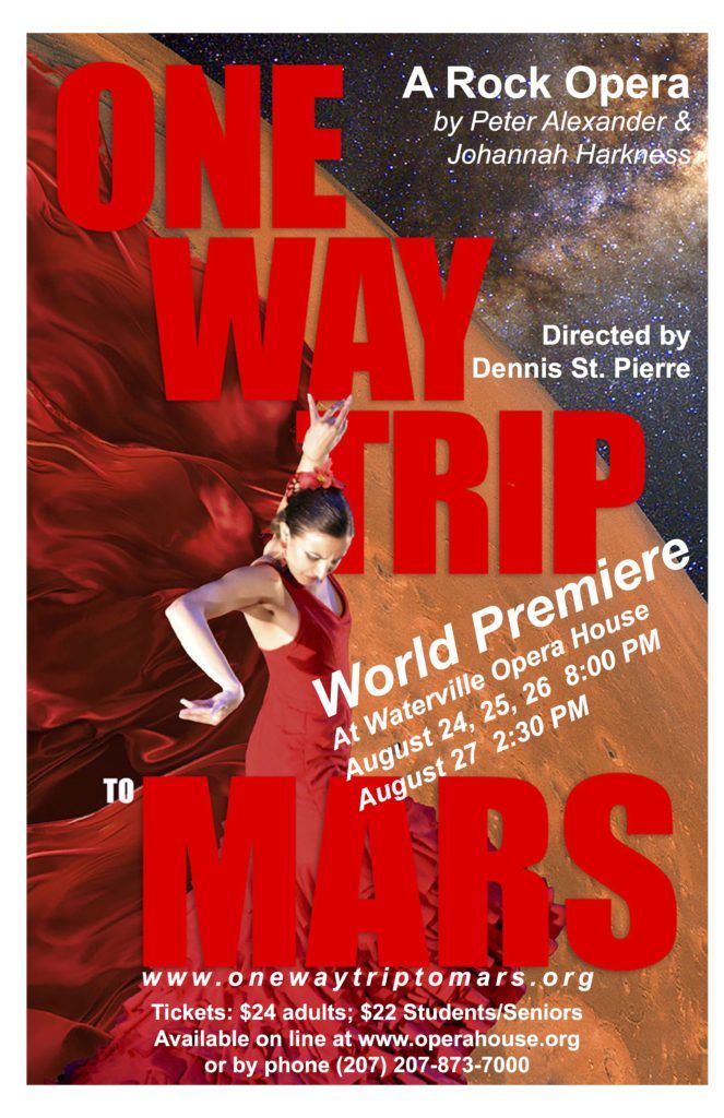 “One Way Trip To Mars-a rock opera” premieres at the Waterville Opera House August 24-27.