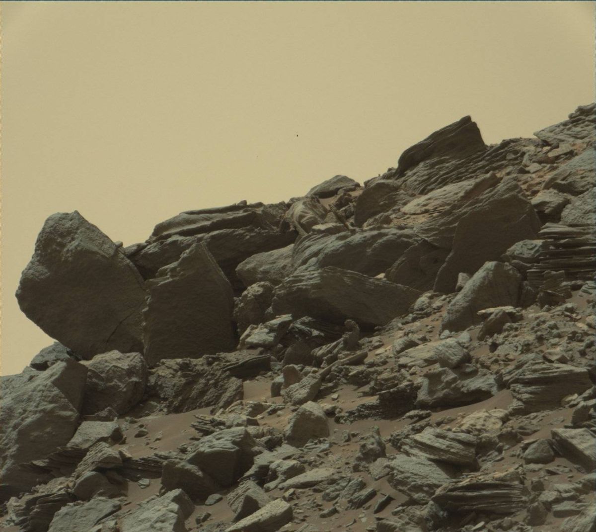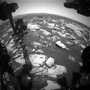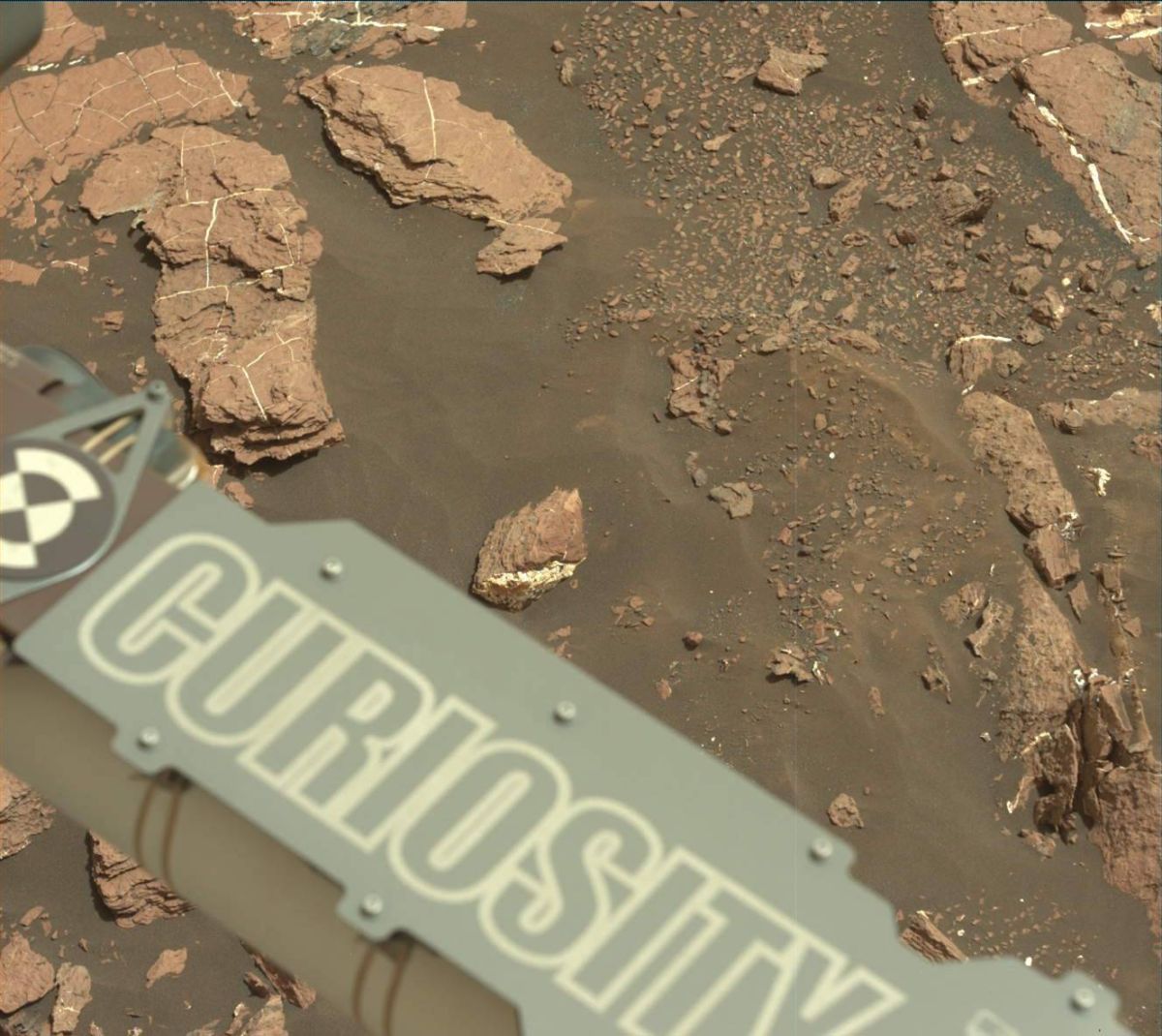 A dark patch of bedrock, appropriately named “Patch Mountain” was chosen for Curiosity’s Chemistry and Camera (ChemCam), Right Mastcam, and Mars Hand Lens Imager (MAHLI) observations.
