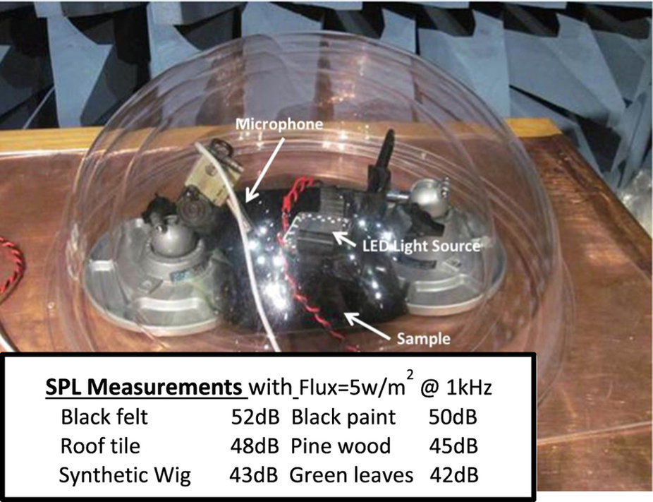 The investigative researchers found that objects with low conductivity, such as leaves, grass, dark paint and even hair, could rapidly warm and transmit heat into nearby air and generate pressure waves by subtle oscillations that create a variety of sounds.