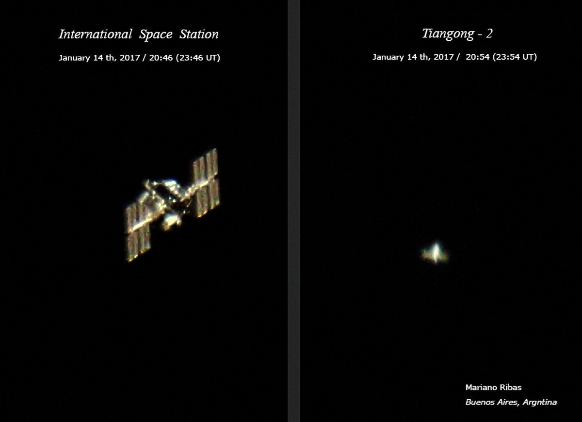 Meanwhile, satellite sleuth Mariano Ribas from Buenos Aires, Argentina has also released some new imagery of the ISS, as well as China’s Tinagong-2 space lab.