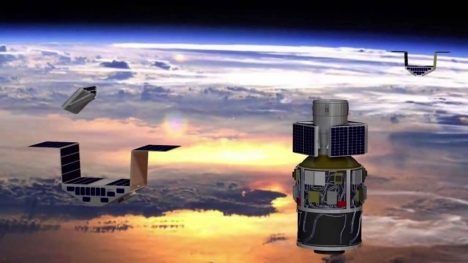 The spacecraft bus precedes this entourage by 2 minutes. The 8 CYGNSS satellites can be viewed over a 2 minute interval (altitude 328 miles) on December 18 at 12:47-12:50UT.
