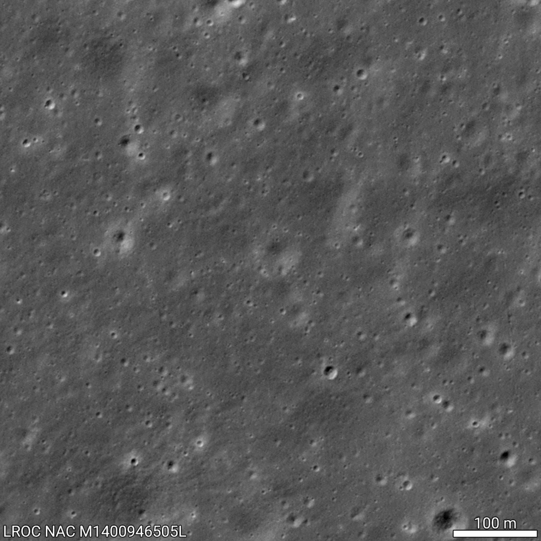 The lander is flanked by two craters similar in size to it, and is on the edge of a much more subtle crater about 50 meters wide, reports Mark Robinson, the principal investigator of the sharp-shooting camera system onboard LRO.