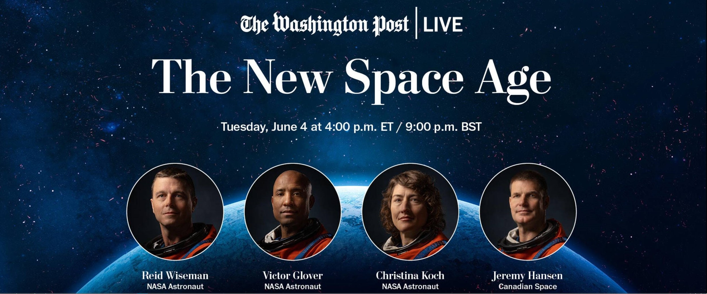 As part of their coverage, the Washington Post is staging an exclusive conversation featuring NASA astronauts Christina Koch, Victor Glover and Reid Wiseman and Canadian astronaut Jeremy Hansen, about their upcoming Artemis II mission.