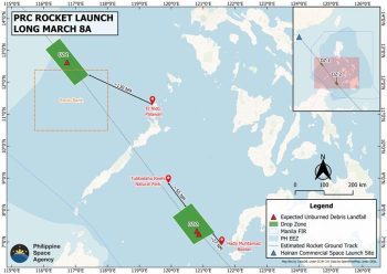 “Unburned debris from rockets, such as the booster and fairing, are designed to be discarded as the rocket enters outer space. While not projected to fall on land features or inhabited areas, falling debris poses danger and potential risk to ships, aircraft, fishing boats, and other vessels that will pass through the drop zone,” explains the PhilSA advisory.