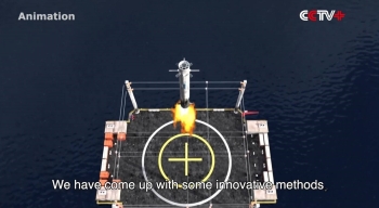 Shades of SpaceX. China Long March-10 stage heads for ocean landing in this artwork.