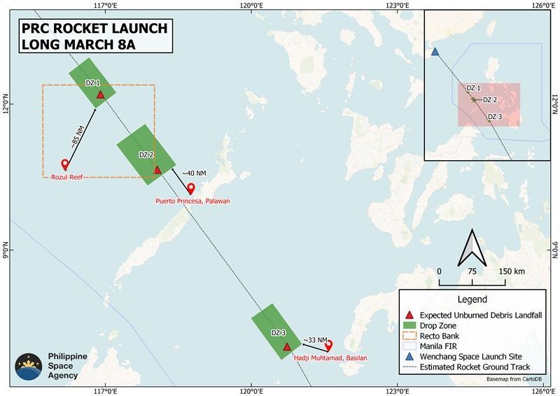 Once again the Philippine Space Agency was on guard for possible rocket debris stemming from China’s recent launch of a Long March 8A rocket from Wenchang Spacecraft Launch Site in Wenchang, Hainan.