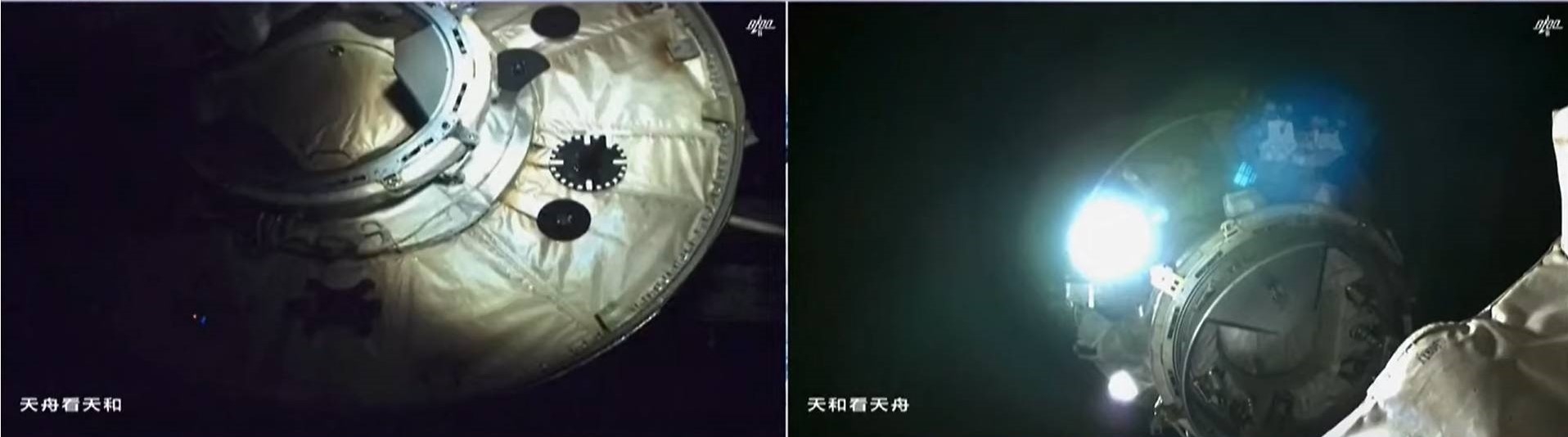 With the cargo craft now attached to the station, the current three-person Shenzhou-15 crew will enter the supply ship and transfer just-arrived payloads.