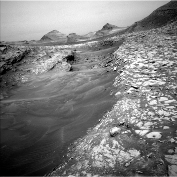 “We also planned a MAHLI stereo mosaic on ‘Whorl Mountain’ to model the rock surface and study bedding orientations around some disrupted laminations,” Edgar added, “and another MAHLI/APXS target called “Little Slide Canyon” to investigate the texture and composition of the more convoluted bedding.”