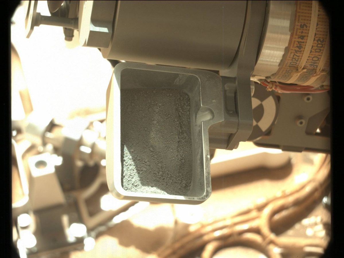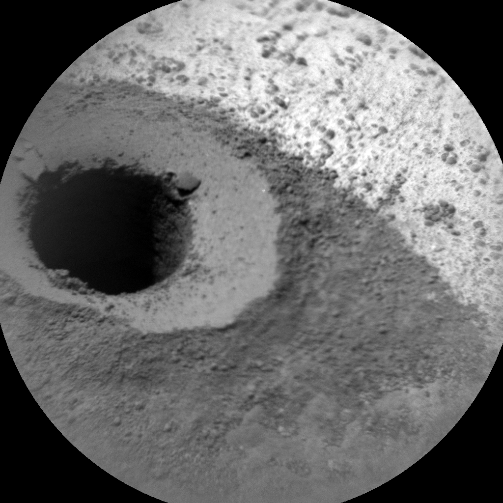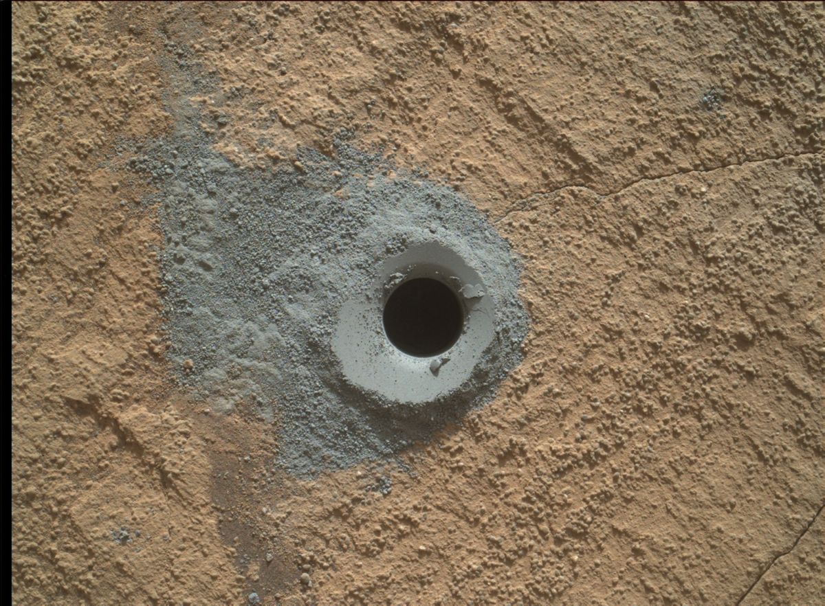 Credit: NASA/JPL-Caltech/LANLthe pre-sieved drill sample. Then use of the robot’s Mastcam is to image the dump pile and drill site, reports Lauren Edgar, a research geologist at the USGS Astrogeology Science Center in Flagstaff, Arizona.