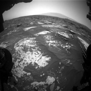 After the drive, ChemCam will perform an automated Autonomous Exploration for Gathering Increased Science (AEGIS) activity to measure bright patches of outcrop.