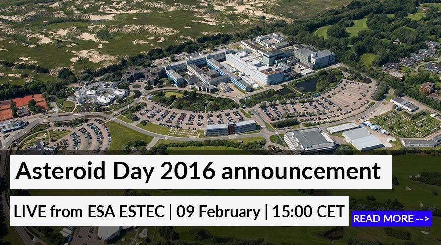 The press conference is dedicated to reveal the events and partners for Asteroid Day 2016 and will start on Tuesday, February 9 at 1500 CET (1400 UTC). It is being held at ESA’s ESTEC technical center in Noordwijk, the Netherlands.