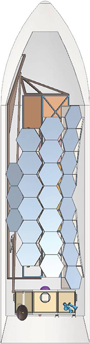 HDST folded within an Evolved Expendable Launch Vehicle (EELV) or Space Launch System-1 shroud. Credit: AURA