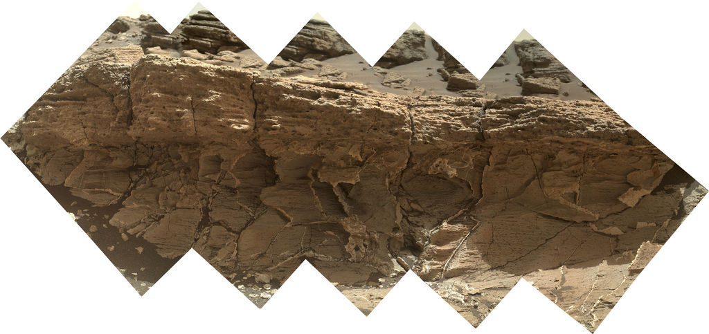 A rock outcrop dubbed “Missoula,” near Marias Pass on Mars, is seen in this image mosaic taken by the Mars Hand Lens Imager on NASA’s Curiosity rover.