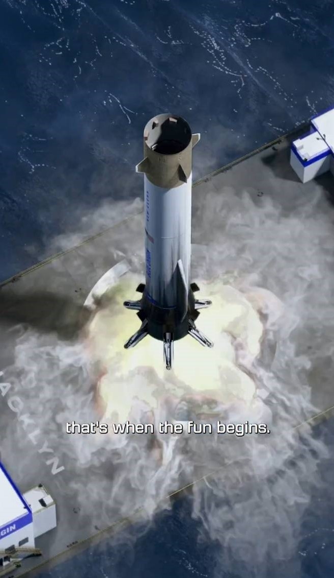 Following separation, the first stage is to perform a reorientation maneuver and autonomously descend toward Jacklyn, a landing platform located several hundred miles downrange in the Atlantic.