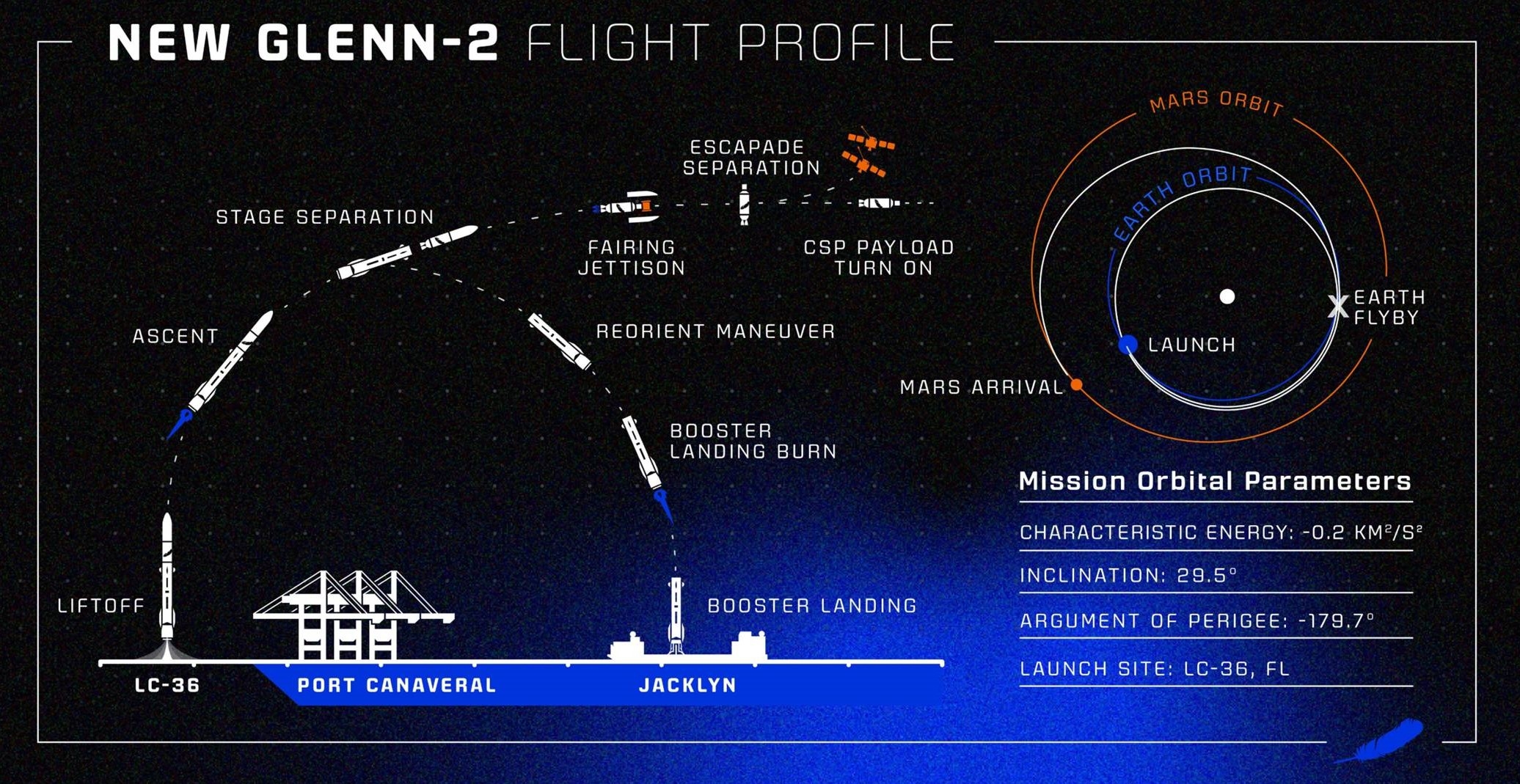 The second mission of Blue Origin’s New Glenn launcher (NG-2) is to depart no earlier than Sunday, November 9 from Launch Complex 36 at Cape Canaveral Space Force Station. The launch window is open from 2:45 to 5:11 p.m. Eastern Time.