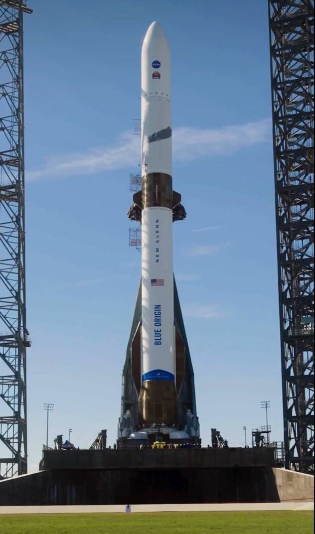 Atop the booster is the NASA ESCAPADE twin spacecraft to be hurled toward Mars. Also onboard is a technology demonstration from Viasat in support of NASA’s Communications Services Project.