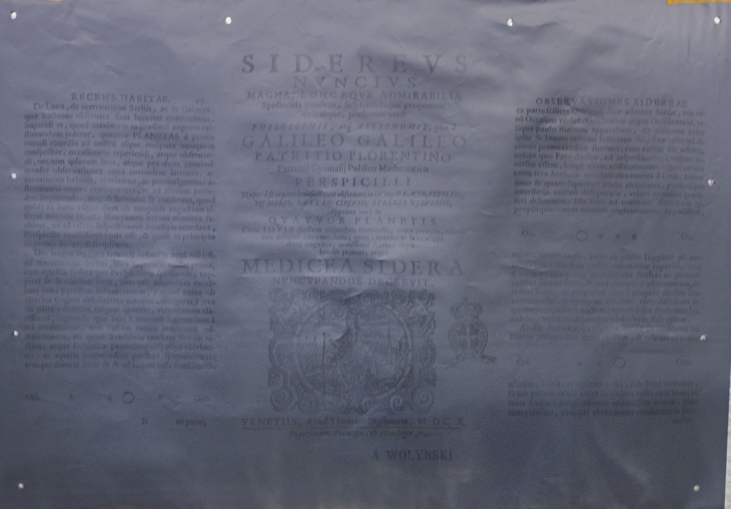 The plaque replicates several pages of Galileo’s Sidereus Nuncius in which he detailed his observations of the moons. They are printed on a piece of multi-layered insulation that makes up the thermal “blanket” wrapped around the spacecraft to keep its internal temperatures stable.