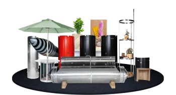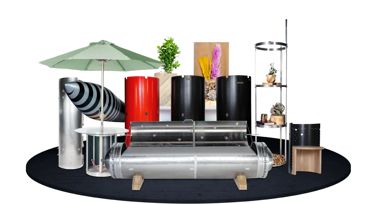 Using scrap materials from rockets to create furniture, from a space tank bench and a space parasol table to hi-fi speakers made out of discarded booster fuel tanks.